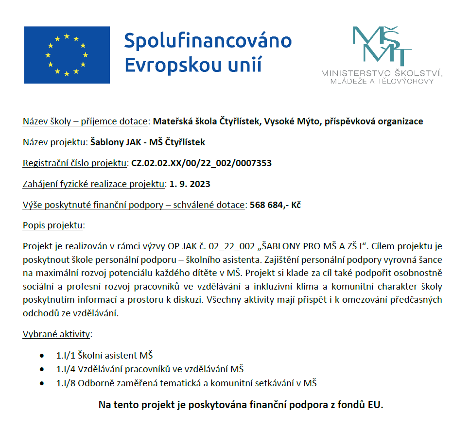 Mateřská škola Čtyřlístek Vysoké Mýto, příspěvková organizace